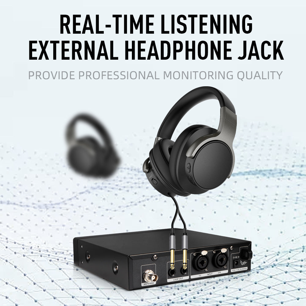 【UHF Band】560-600Mhz wireless in-ear monitor system, build your personal or team monitor system. Uncompressed wireless signal transmission, low noise and delay. Provides a smooth frequency response for any headphone.