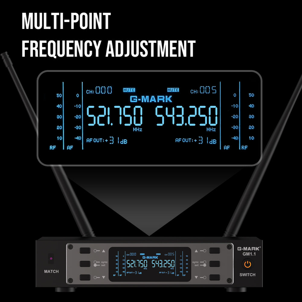 The adjustable frequency feature makes the GM1.1 suitable for various occasions. Whether you need clear transmission for a speech or conference or pursue excellent sound quality for a concert, you can adjust the frequency according to your actual needs and achieve the best sound performance. This flexibility makes the G-MARK GM1.1 a valuable assistant in your work and life.