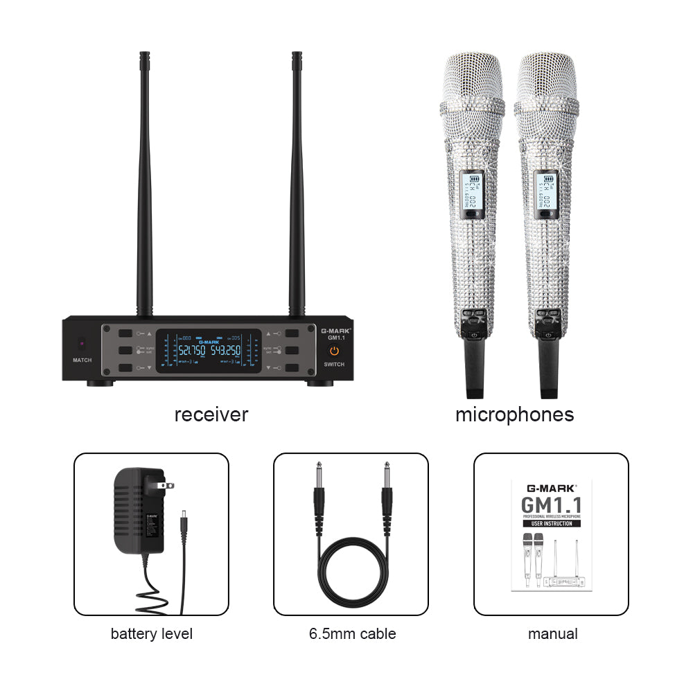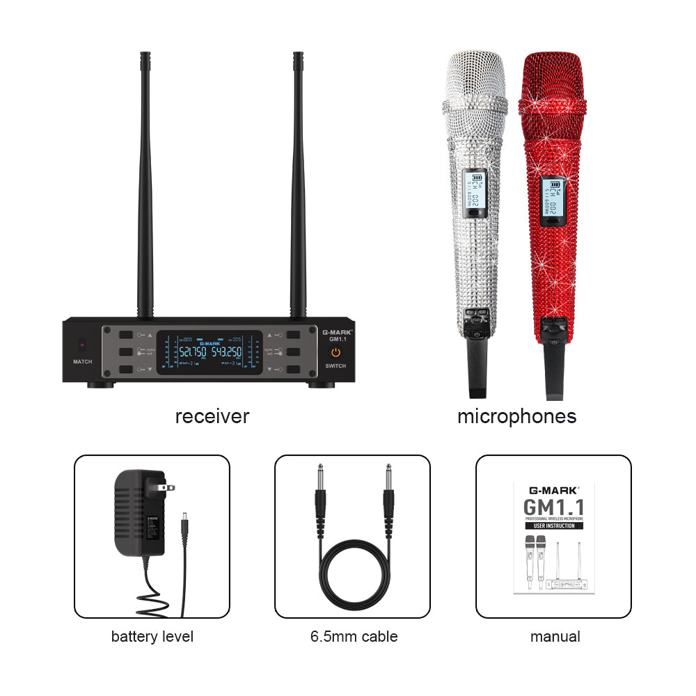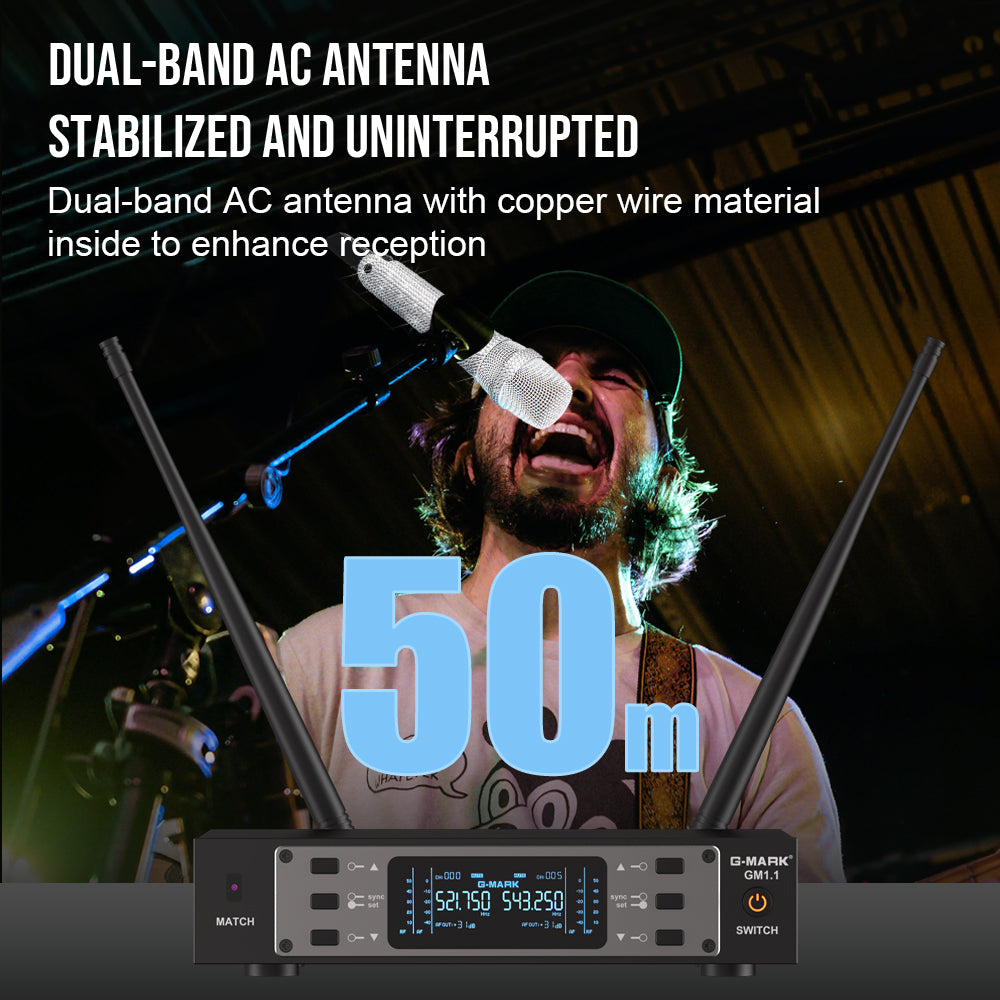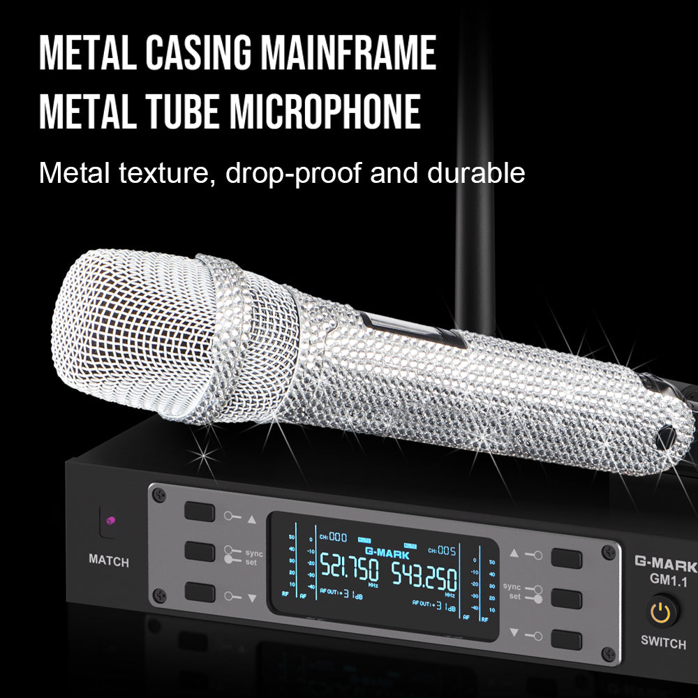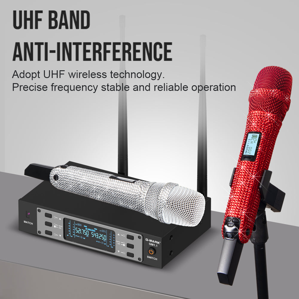 G-MARK Wireless Microphone GM1.1 Professional UHF Frequency Adjustable Metal Handheld Karaoke Mic For Party Show Teaching Wedding
