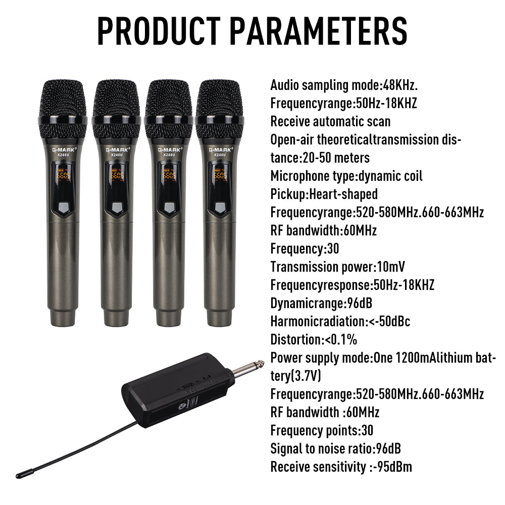 Wireless Microphone G-MARK X240U UHF Recording Karaoke Mic With Rechargeable Lithium Battery Receiver Work 5 Hours For Speaker
