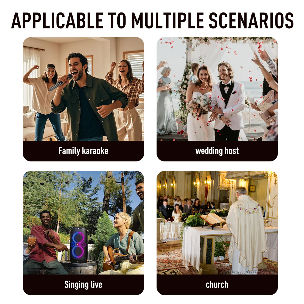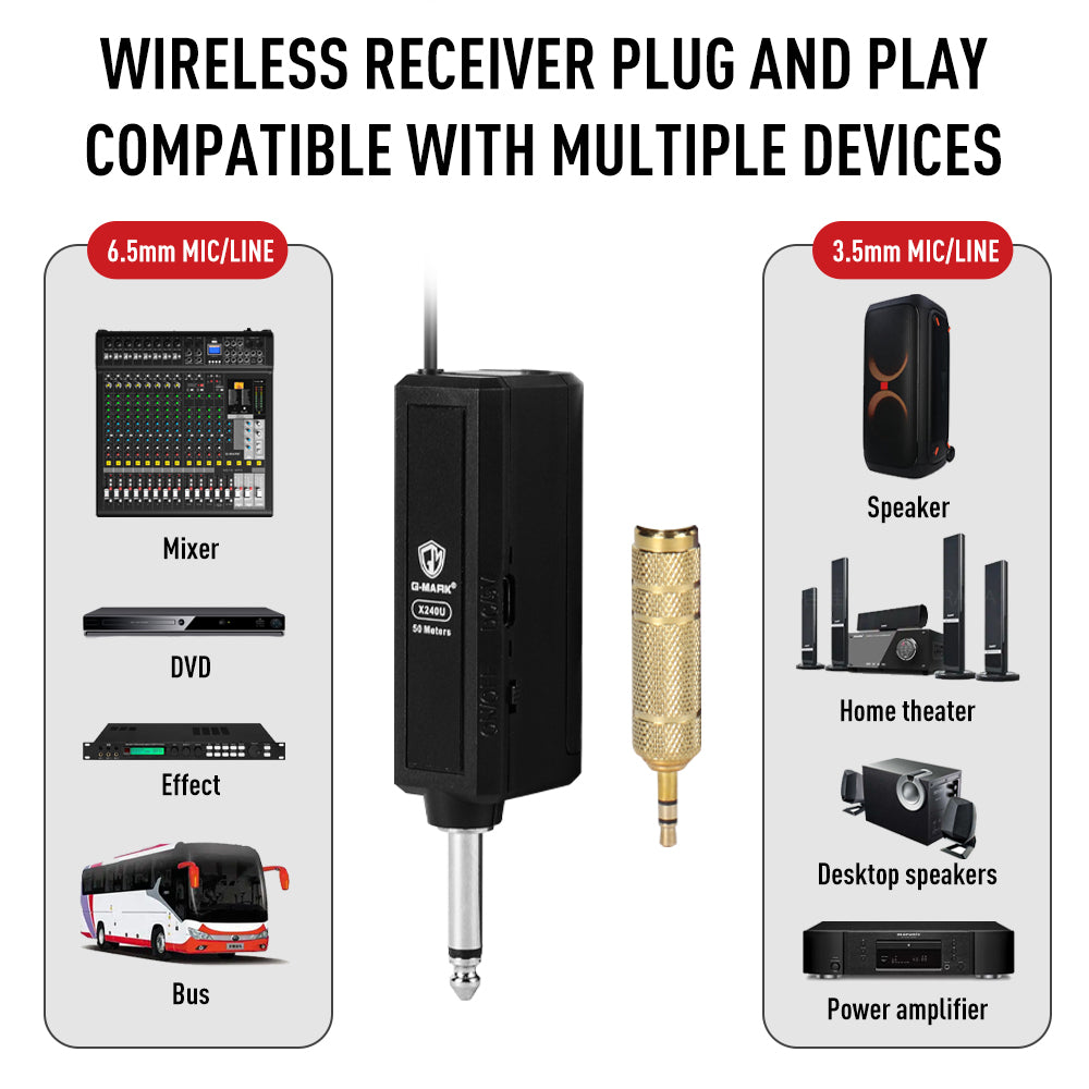 Two Karaoke Microphones Can Be Used At The Same Time: Suitable For Party Speakers, It can be connected to any speaker with a MIC interface by connecting the wireless receiver, or it can be connected to the mixer as an extension of the wireless microphon.G-MARK wireless microphone provides clear, crisp sound quality.