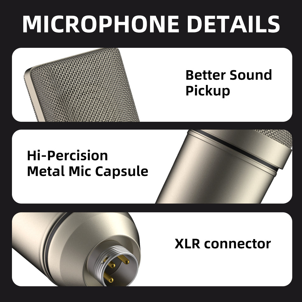Condenser Mic Versatility:The condenser mic design ensures versatile usage for various recording scenarios.