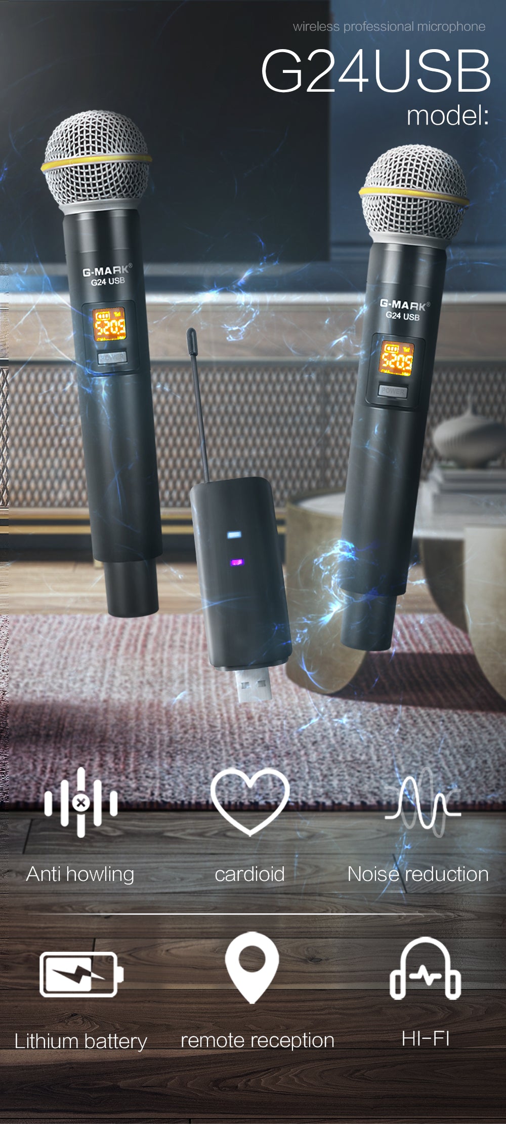 1. USB plug: G-MARK customized USB connector, suitable for most types of TVs and computers, you can sing at home at any time.