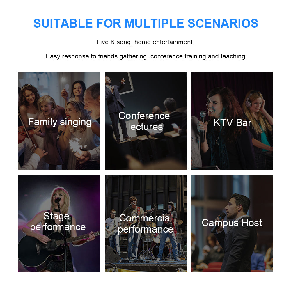 Applicable Occasions: This wireless microphone is suitable for live karaoke, conferences, home entertainment, teaching, party speaker , show ,stage performances and weddings.