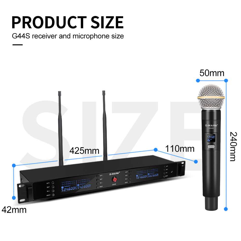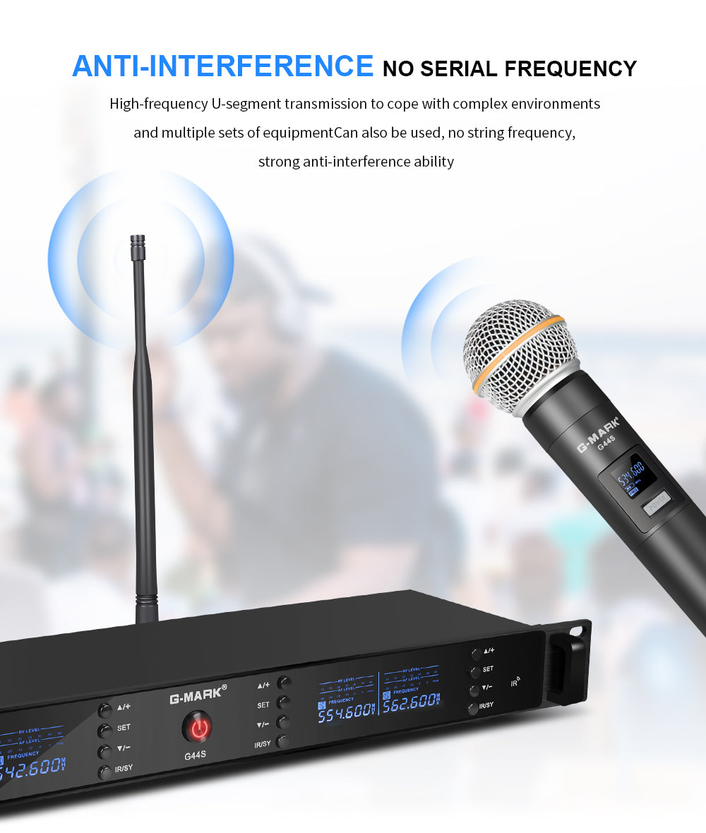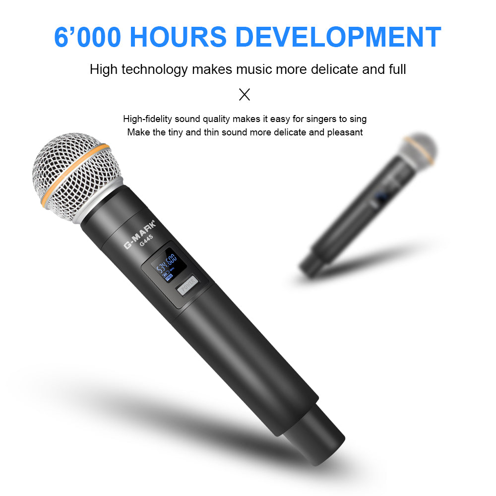 4 Wireless Microphone System G-MARK G44S Professional UHF 4 Channels Microphon Karaoke Mic Handheld Automatic Frequency Adjustable Metal Body For Party Speaker Show Stage Wedding
