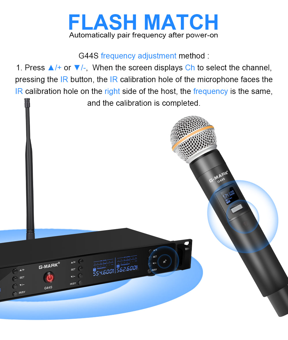 G-MARK Proprietary Capsule: The dynamic microphone's capsule of each microphone is developed and manufactured by G-MARK and is printed with the G-MARK logo. The high-quality core effectively limits feedback and interference, picks up sound smoothly and transmits it with ease. Provides clear, powerful, best true sound.