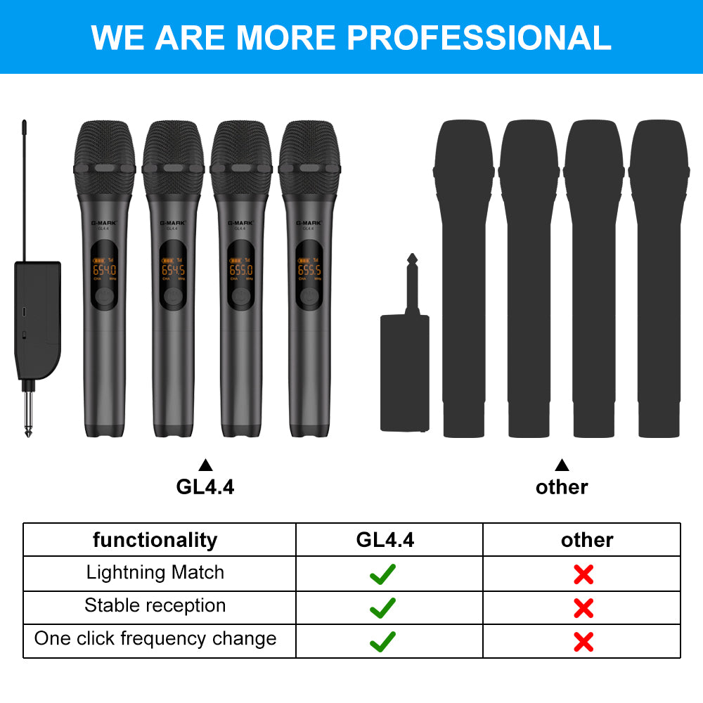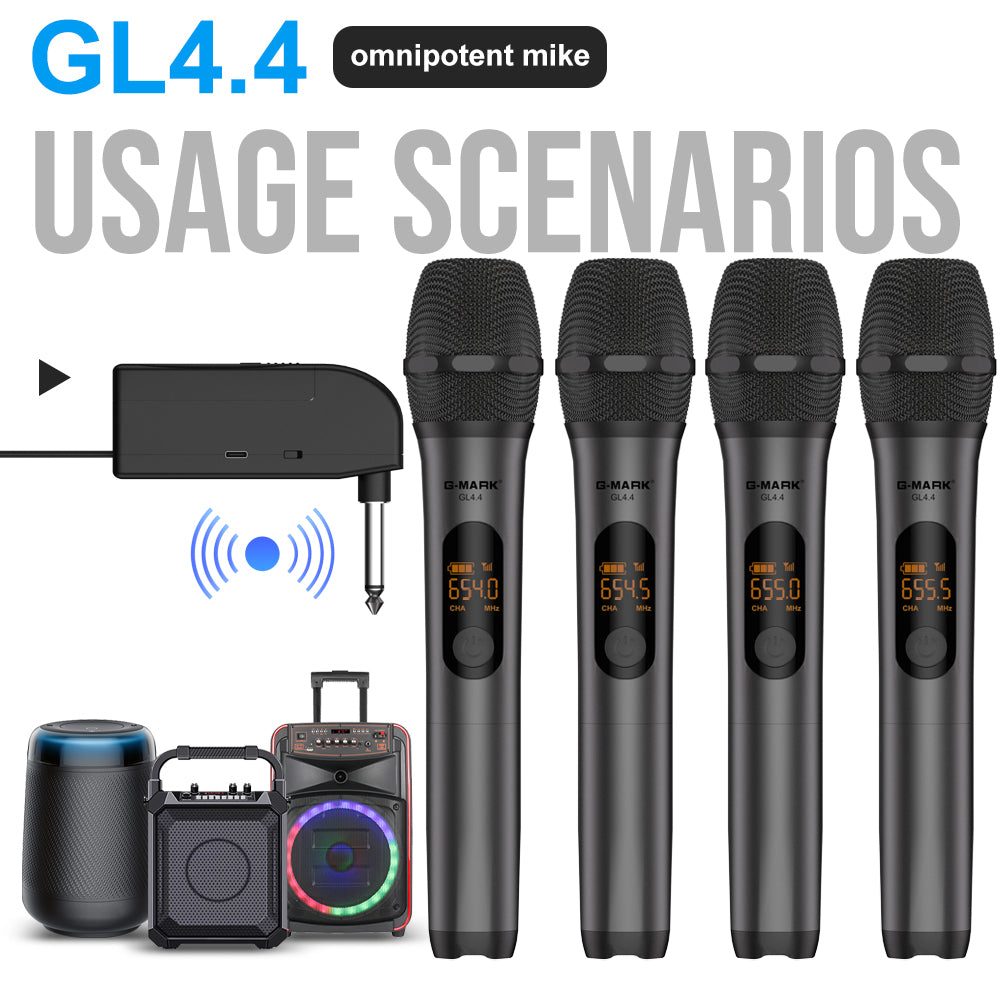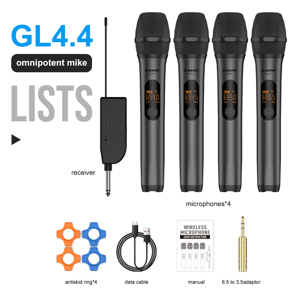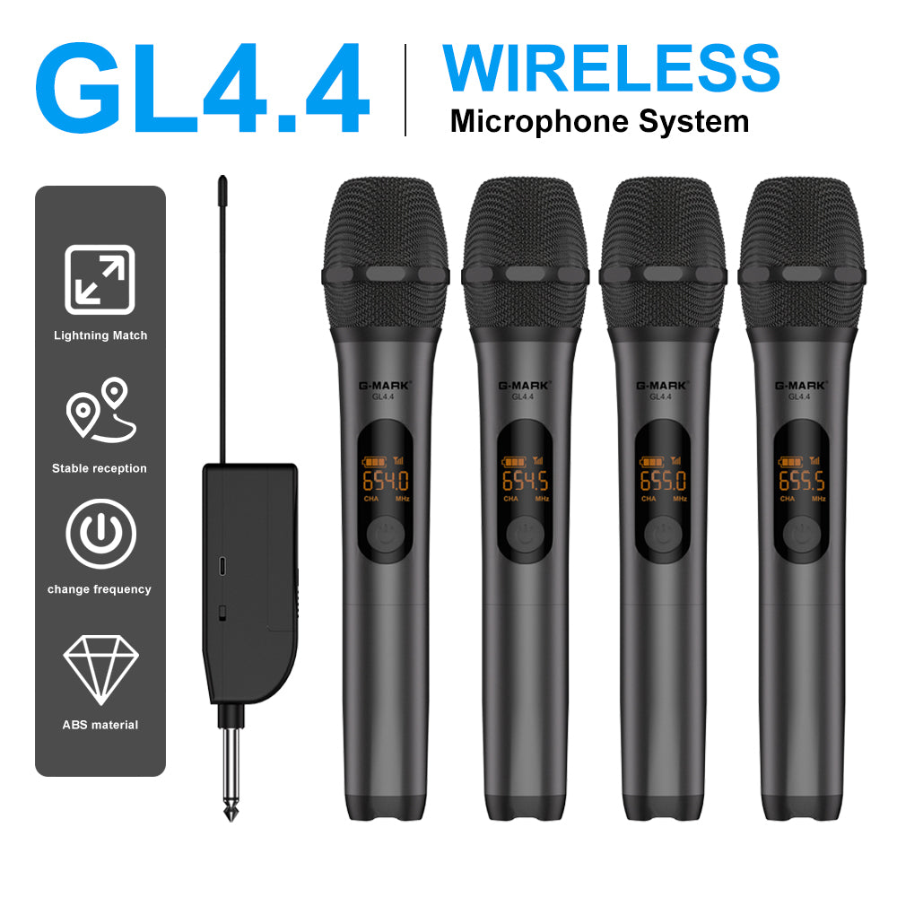 4 Wireless Microphone System G-MARK GL4.4 Professional 4 Channels Microphon Karaoke Mic Fixed Frequency For Home Party Speaker Show Stage Wedding