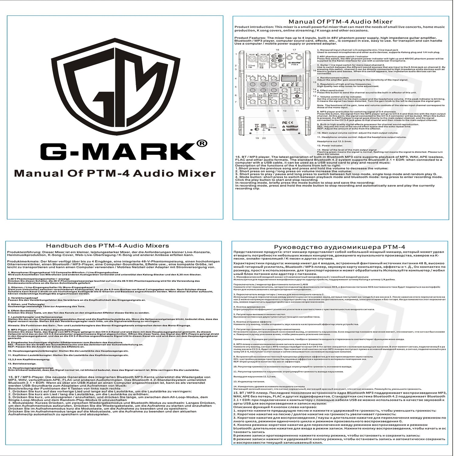 Audio Mixer G-MARK PTM-4 Bluetooth Professional Portable DJ Console 48V Phantom Power USB Interface Mixing Boards For Studio Live Recording