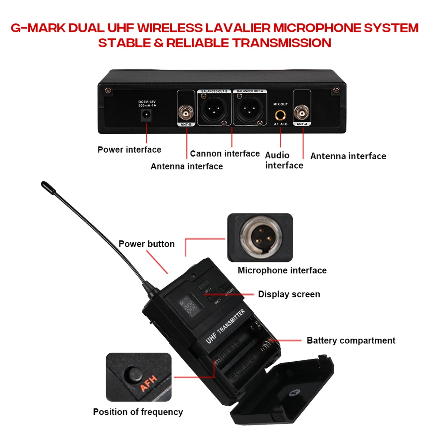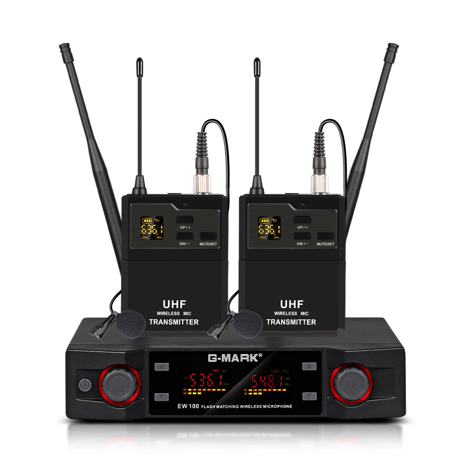 Wireless Microphon G-MARK EW100 Professional UHF Karaoke Lavalier Mic Frequency Adjustable 50M For Party Show Stage Wedding