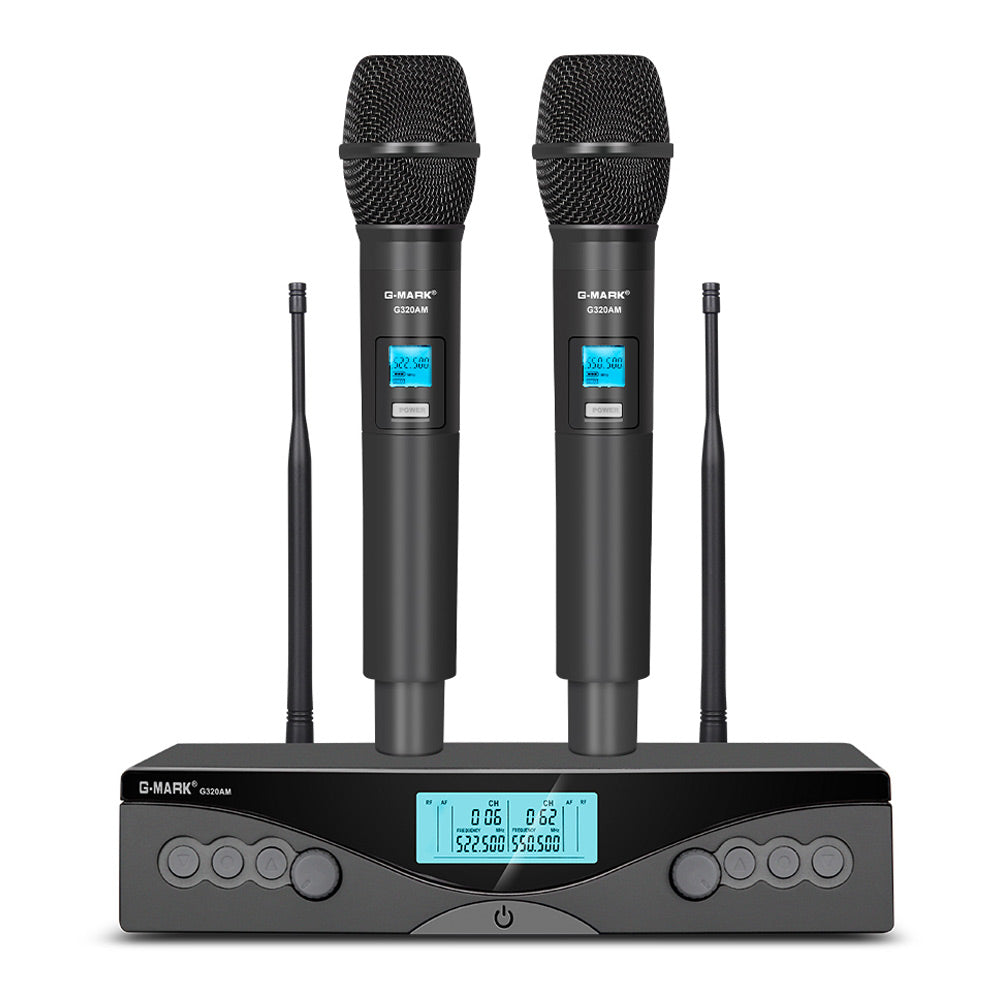 Wireless Microphone G-MARK G320AM Professional UHF 2 Channels Karaoke Mic Handheld Automatic Frequency Adjustable