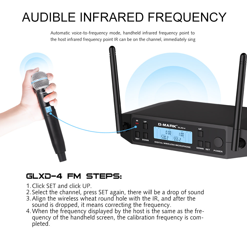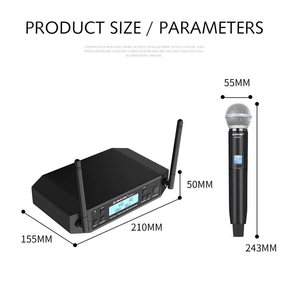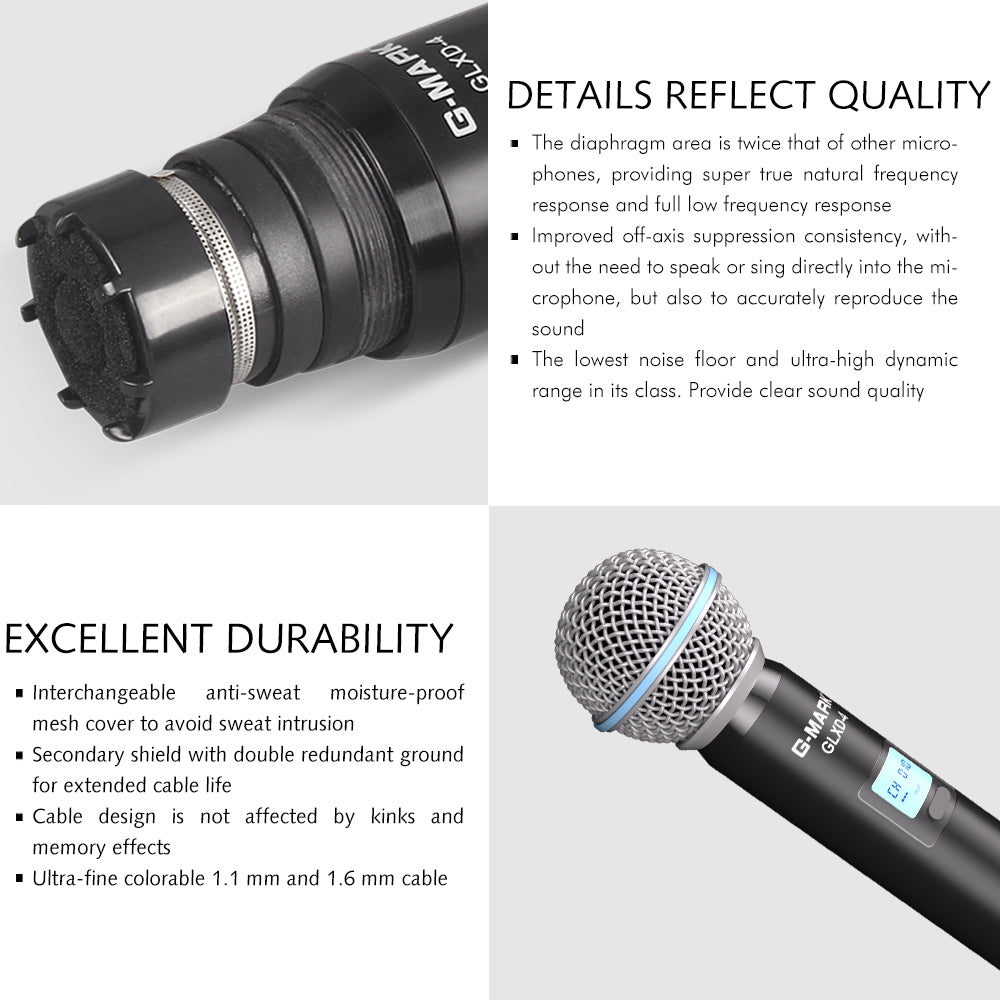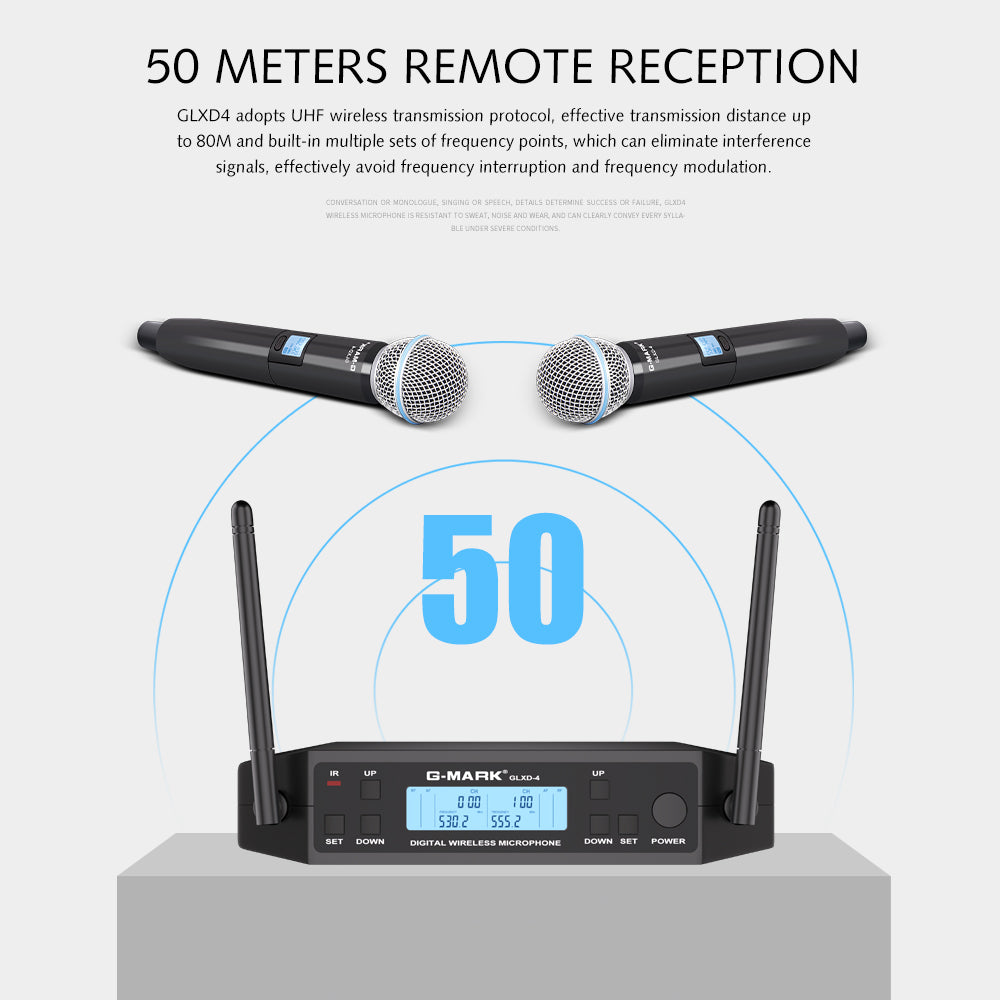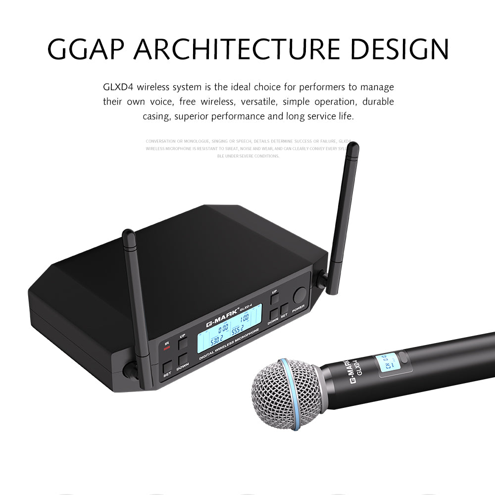 Microphone Wireless G-MARK GLXD4 Professional UHF System Handheld Mic For Stage Speech Wedding Show Band Home Party Church
