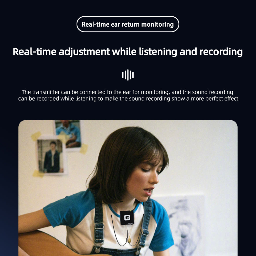Lapel microphone support Bluetooth 5.0, Bluetooth direct connection to mobile phones, play accompaniment music and will not affect the human voice, you can use the matching headphones for ear monitoring, recording effect is more realistic.