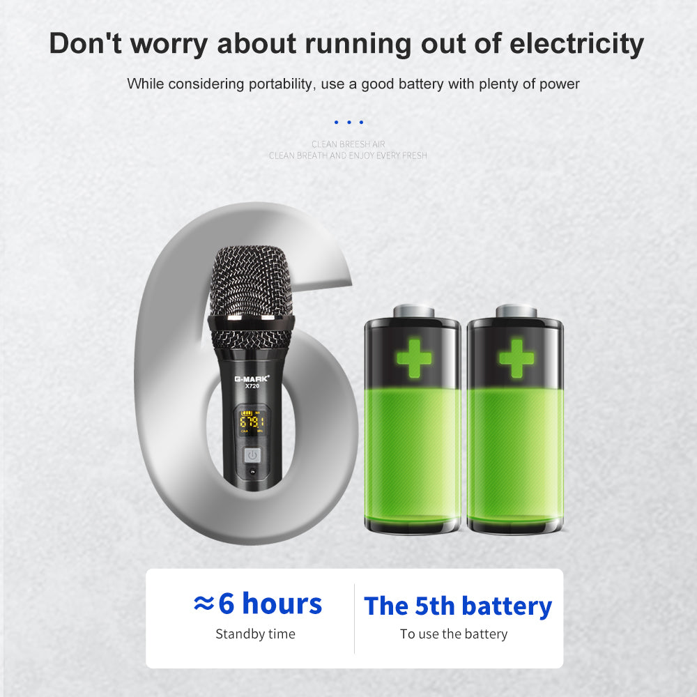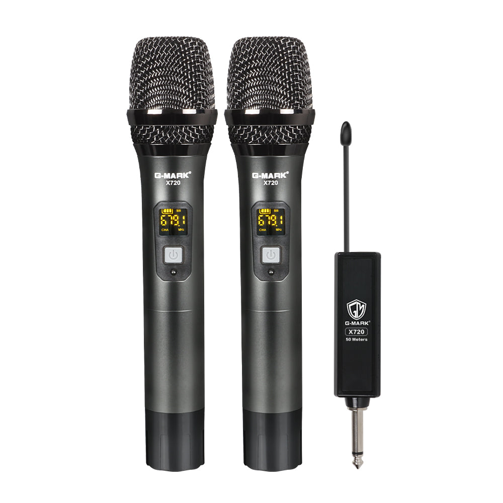 Wireless Microphone G-MARK X720 UHF Karaoke Mic Metal Body With Rechargeable Lithium Battery Receiver For Karaoke Meeting Stage DJ Speaker Wedding School