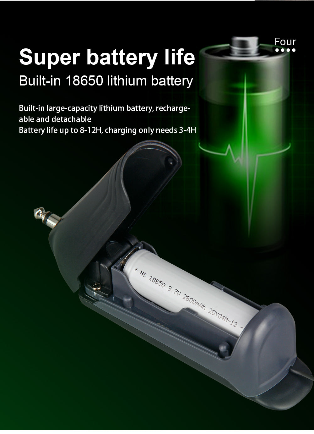 -Battery: Built in 18650 lithium battery