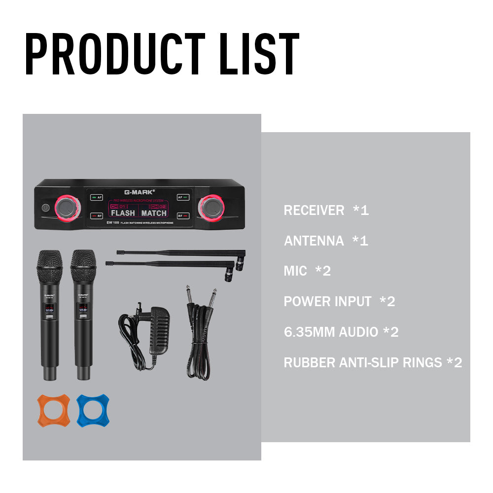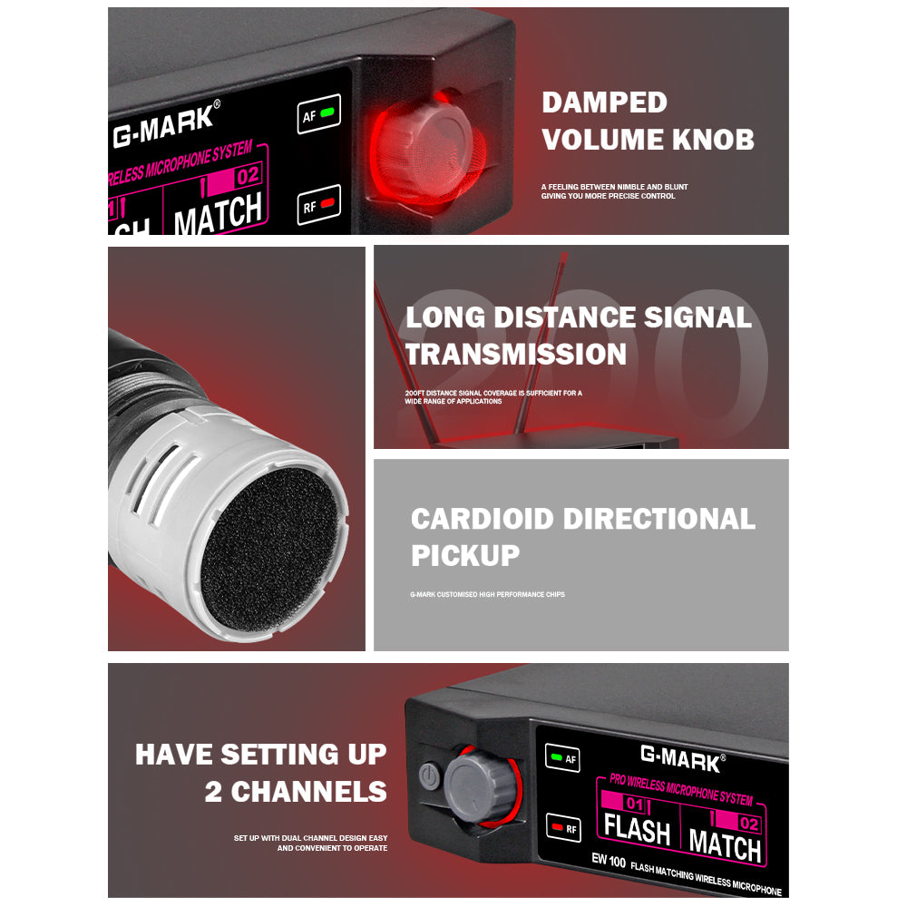 G-MARK proprietary capsule: The dynamic microphone capsule of each microphone is developed and produced by G-MARK, and is printed with the G-MARK logo. The high-quality core effectively limits feedback and interference, picks up sound smoothly, and transmits easily. Provides clear, powerful, best authentic sound.