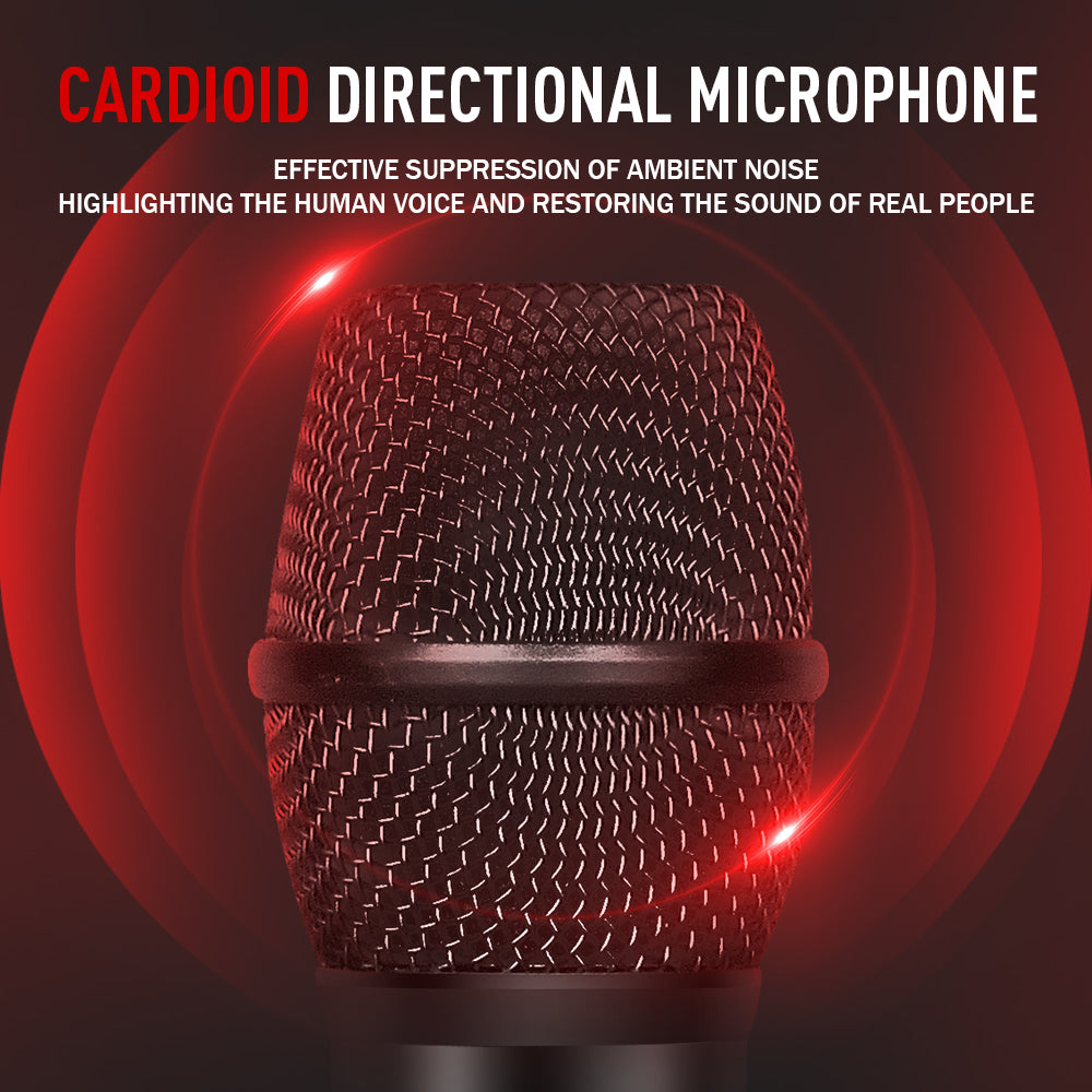Strong anti-interference function: The karaoke wireless microphone is equipped with an automatic scanning function, which enables the system to search for the channel with the least interference to pair with the transmitter. The 2-antenna design increases the anti-interference ability and reduces the interference between each channel.